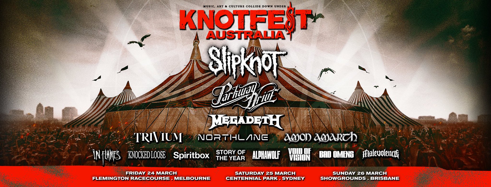 14 hours agoKnotfest Australia will debut at Melbournes Flemington Racecourse on March 24 followed by Centennial Park in Sydney March 25 and Brisbane Showgrounds March 26. The band will be. The aussie metal lovers calendar will be etched with three new dates that are a must see for every heavy music fan as knotfest makes its maiden voyage down under in 2023.